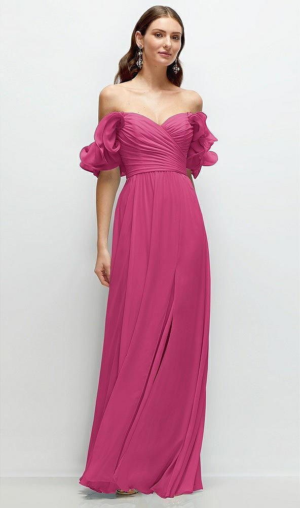 Dramatic Ruffle Edge Strap Chiffon Maxi Dress in Tea Rose