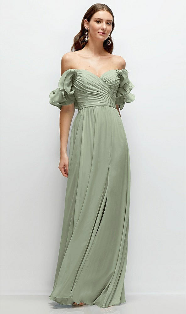Dramatic Ruffle Edge Strap Chiffon Maxi Dress in Sage