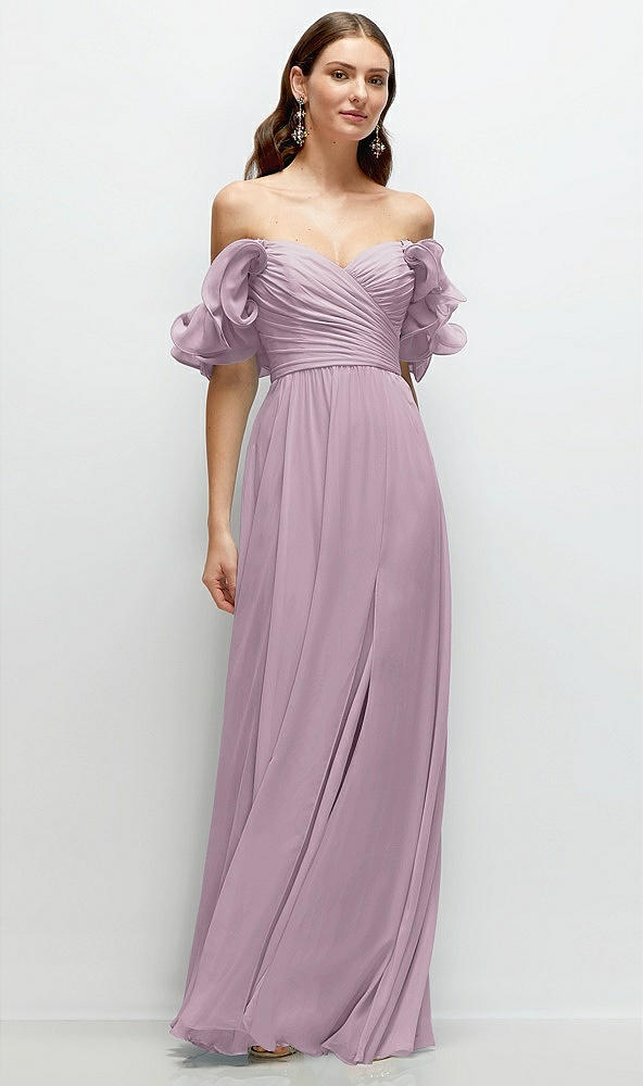 Dramatic Ruffle Edge Strap Chiffon Maxi Dress in Suede Rose