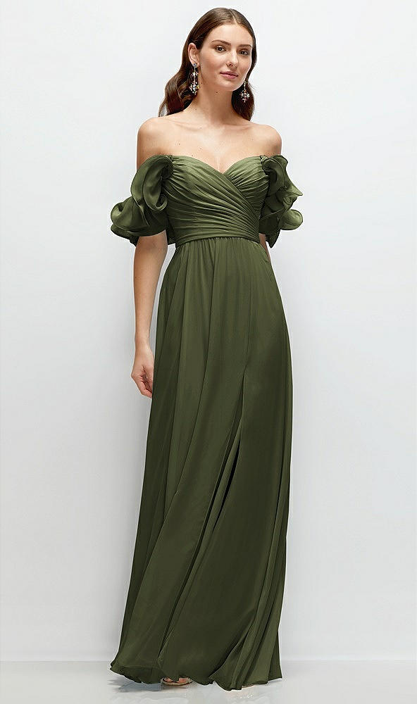 Dramatic Ruffle Edge Strap Chiffon Maxi Dress in Olive Green