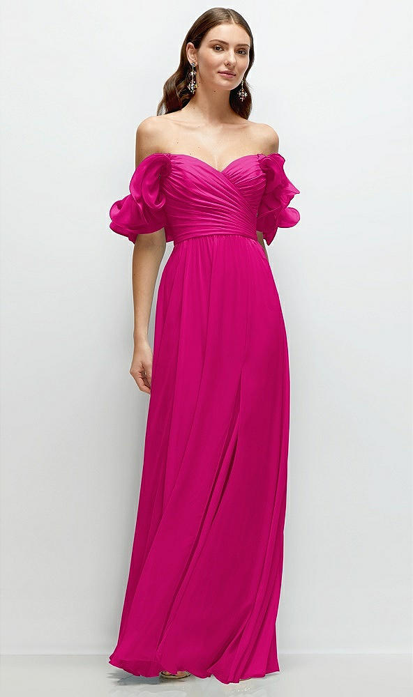 Dramatic Ruffle Edge Strap Chiffon Maxi Dress in Think Pink