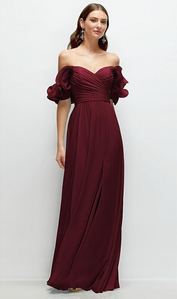 Dramatic Ruffle Edge Strap Chiffon Maxi Dress in Cabernet