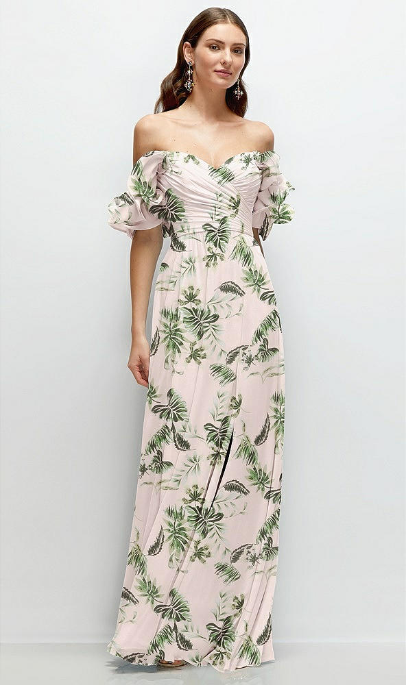 Dramatic Ruffle Edge Strap Chiffon Maxi Dress in Palm Beach Print