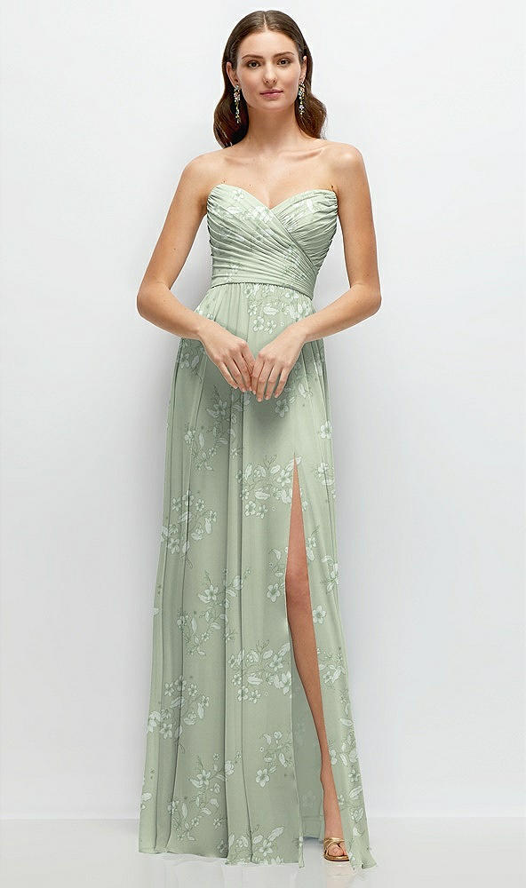 Strapless Pleated Surplice Chiffon Maxi Dress with A-Line Skirt in Vintage Primrose Sage