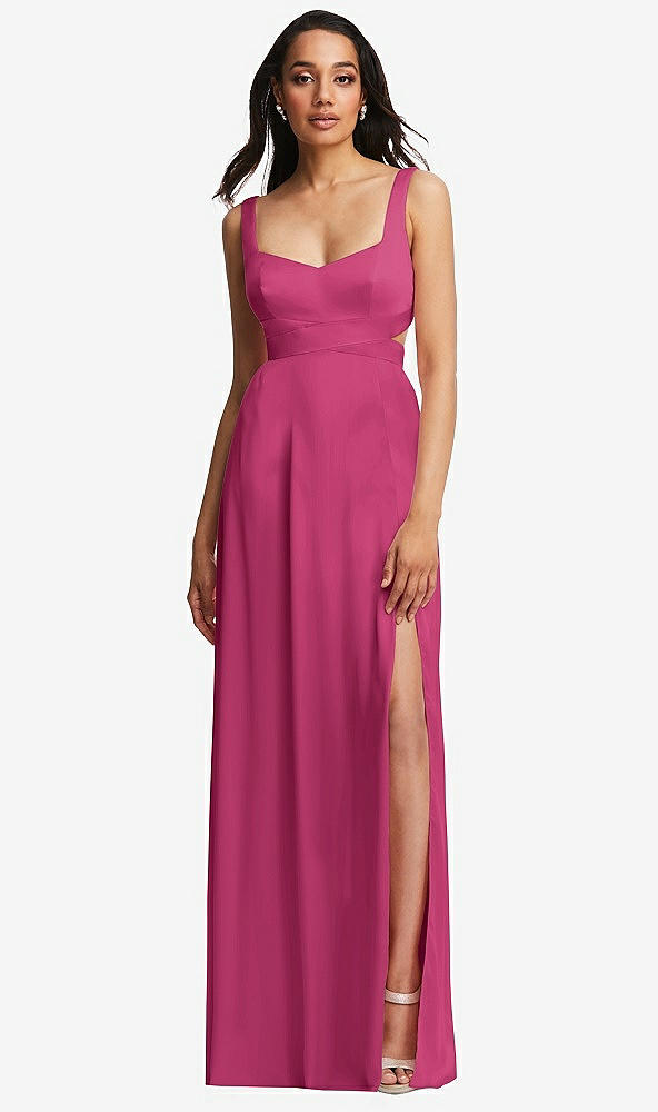 Open Neck Cross Bodice Cutout Maxi Dress with Front Slit in Tea Rose