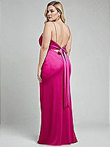 Plunge Halter Open-Back Maxi Bias Dress with Low Tie Back in Think Pink