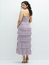 Ruffle Tiered Skirt Metallic Pleated Strapless Midi Dress in Metallic Lilac Haze