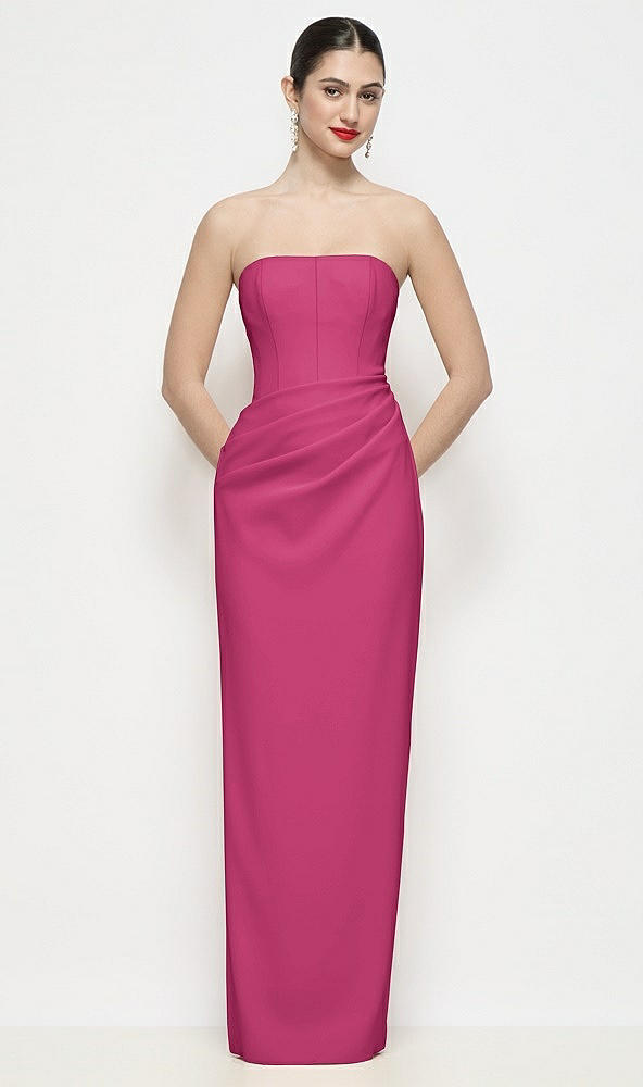 Strapless Asymmertical Drop Waist Corset Maxi Dress with Column Skirt in Tea Rose