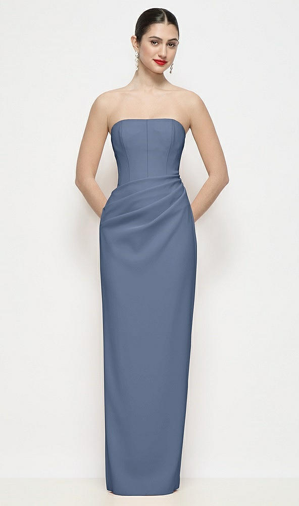 Strapless Asymmertical Drop Waist Corset Maxi Dress with Column Skirt in Larkspur Blue