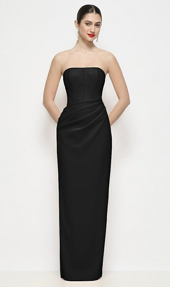 Strapless Asymmertical Drop Waist Corset Maxi Dress with Column Skirt in Black
