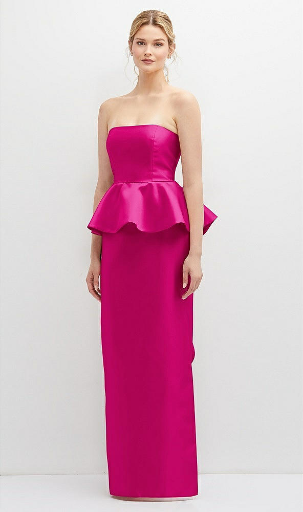 Strapless Satin Maxi Dress with Cascade Ruffle Peplum Detail in Think Pink