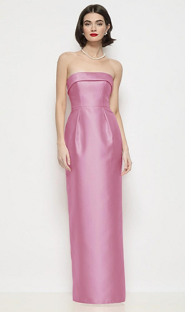 Strapless Cuff Neck Satin Maxi Dress with Column Skirt in Powder Pink
