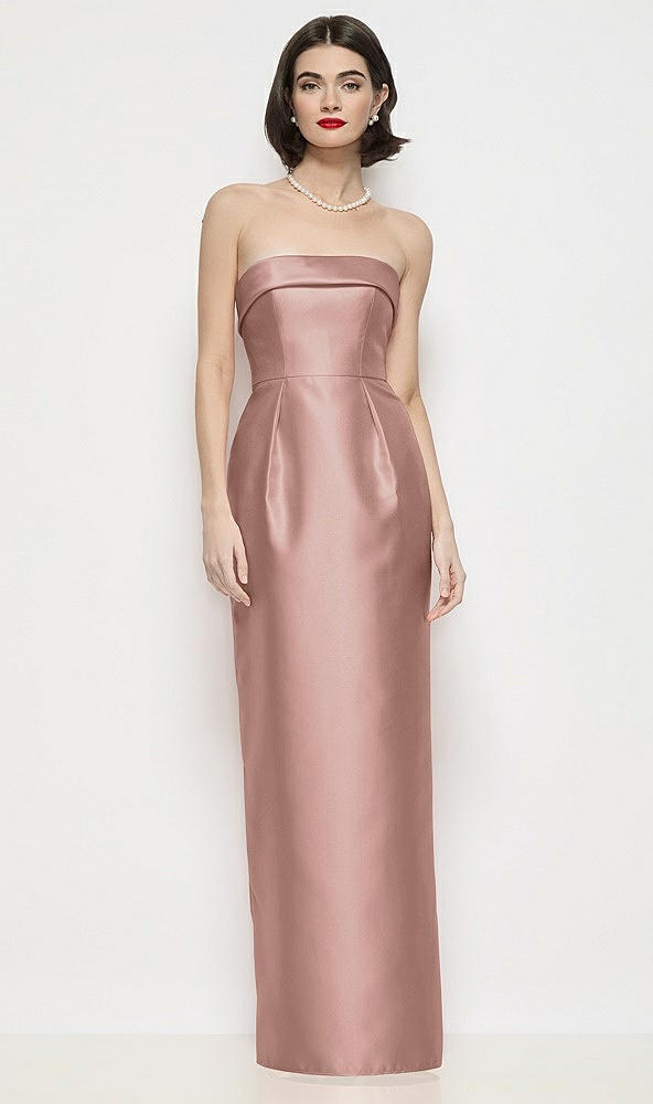 Strapless Cuff Neck Satin Maxi Dress with Column Skirt in Neu Nude