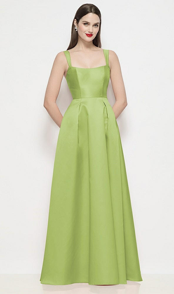 Shaped Strap Basque Neck Satin Maxi Dress with Pleated Skirt in Mojito