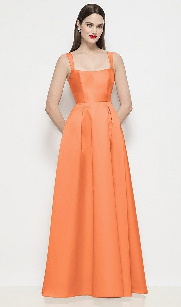 Shaped Strap Basque Neck Satin Maxi Dress with Pleated Skirt in Portofino Orange