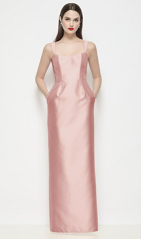 Shaped Strap Basque Neck Satin Maxi Dress with Column Skirt in Rose