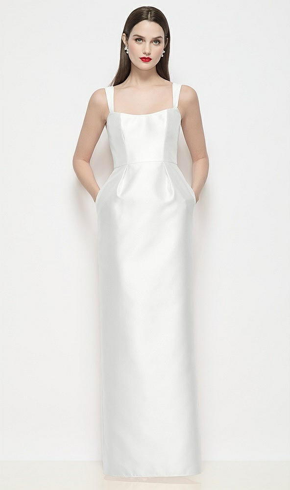 Shaped Strap Basque Neck Satin Maxi Dress with Column Skirt in White