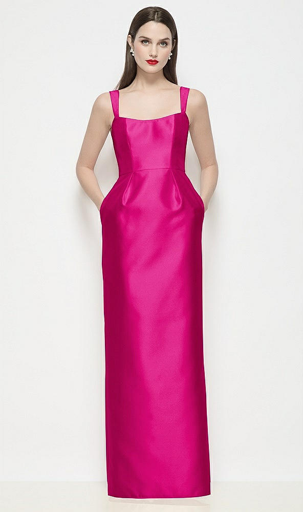 Shaped Strap Basque Neck Satin Maxi Dress with Column Skirt in Think Pink