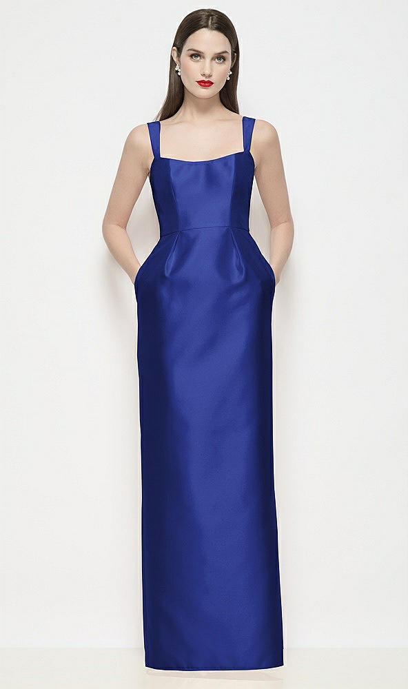 Shaped Strap Basque Neck Satin Maxi Dress with Column Skirt in Cobalt Blue