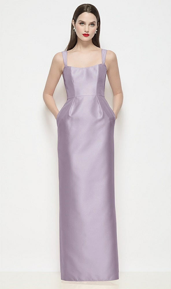 Shaped Strap Basque Neck Satin Maxi Dress with Column Skirt in Lilac Haze