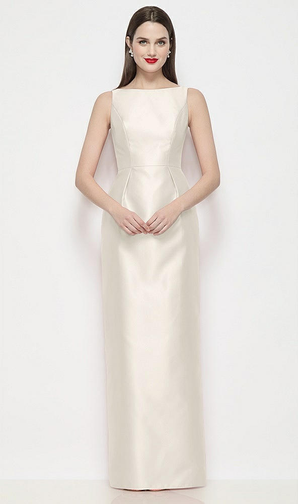 Bateau Neck Satin Maxi Dress with Pleated Column Skirt in Ivory