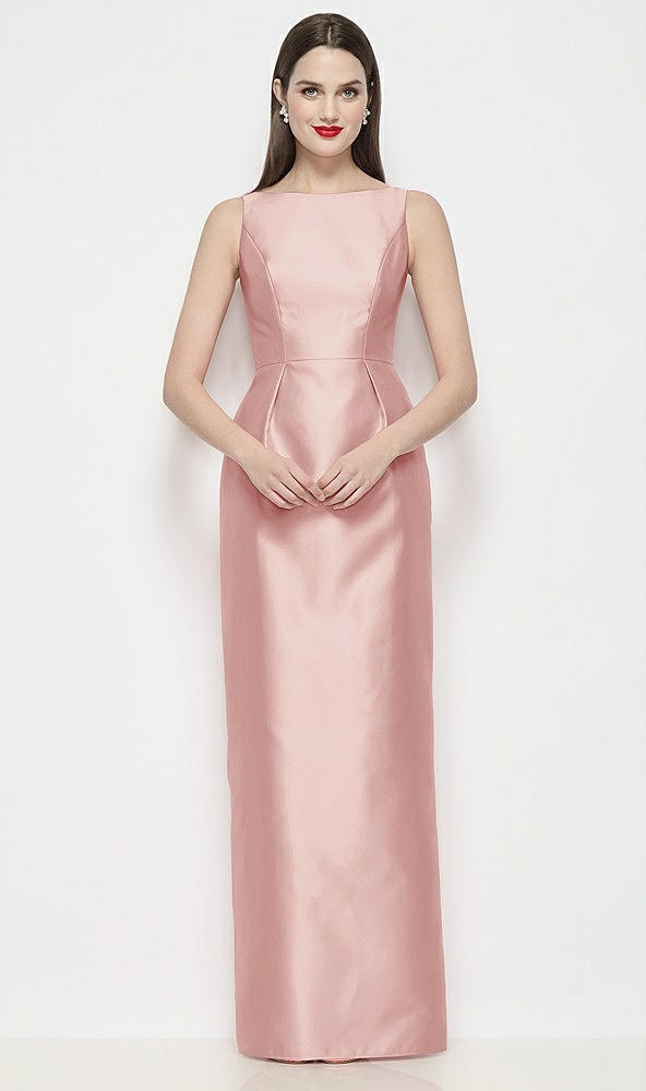 Bateau Neck Satin Maxi Dress with Pleated Column Skirt in Rose