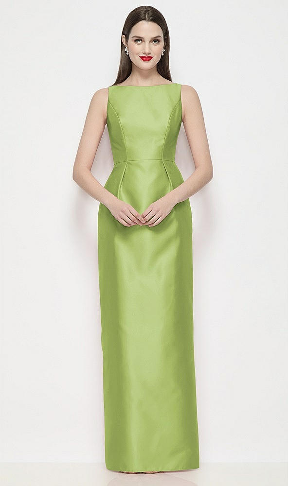 Bateau Neck Satin Maxi Dress with Pleated Column Skirt in Mojito