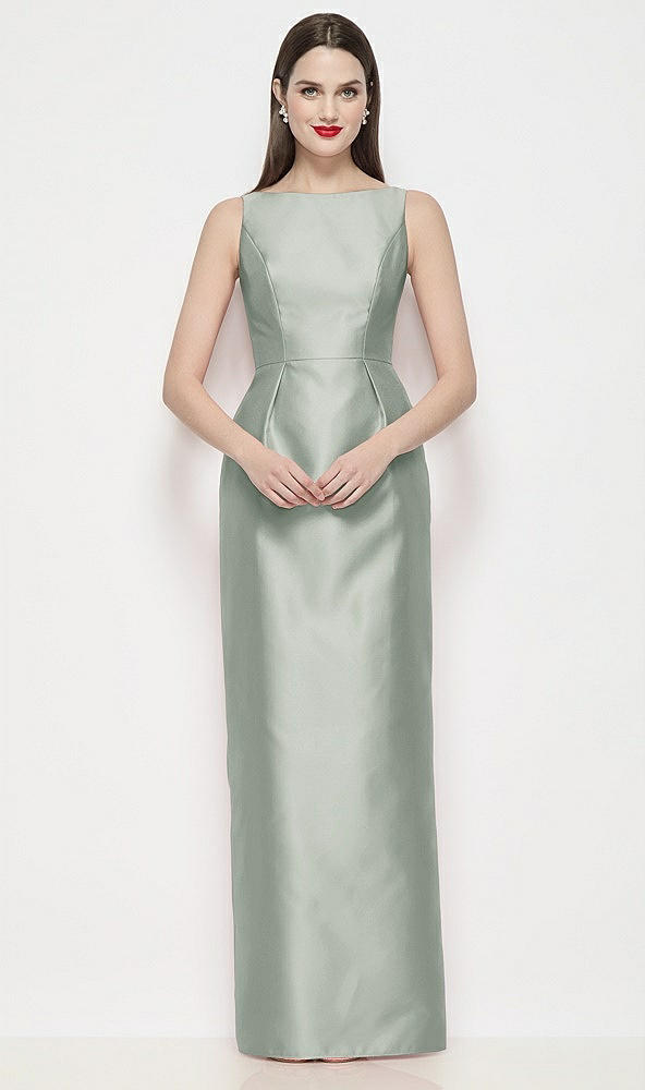 Bateau Neck Satin Maxi Dress with Pleated Column Skirt in Willow Green