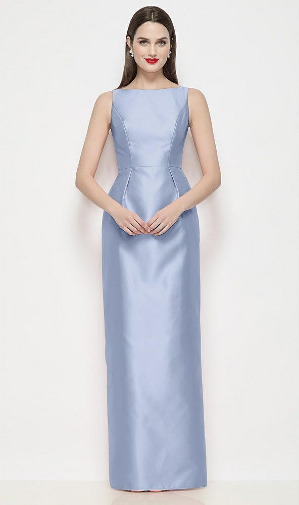Bateau Neck Satin Maxi Dress with Pleated Column Skirt in Sky Blue