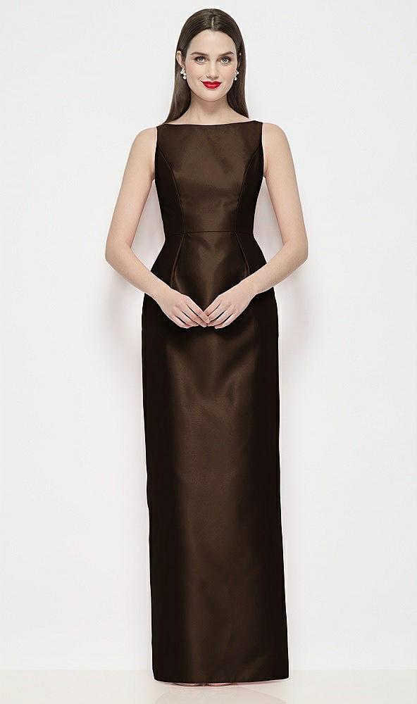 Bateau Neck Satin Maxi Dress with Pleated Column Skirt in Espresso