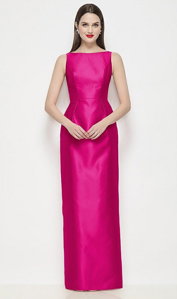 Bateau Neck Satin Maxi Dress with Pleated Column Skirt in Think Pink