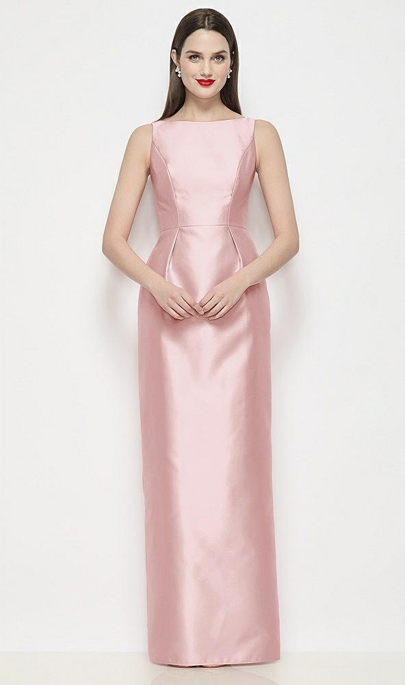 Bateau Neck Satin Maxi Dress with Pleated Column Skirt in Ballet Pink