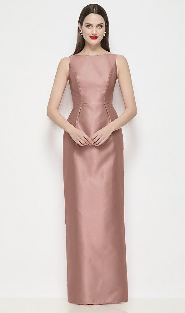 Bateau Neck Satin Maxi Dress with Pleated Column Skirt in Neu Nude