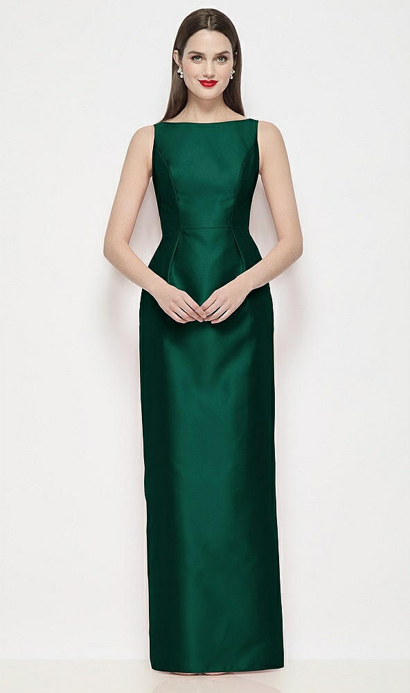 Bateau Neck Satin Maxi Dress with Pleated Column Skirt in Hunter Green