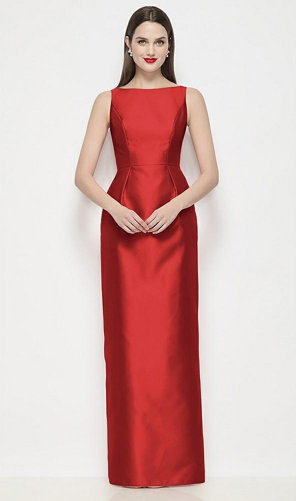 Bateau Neck Satin Maxi Dress with Pleated Column Skirt in Poppy Red
