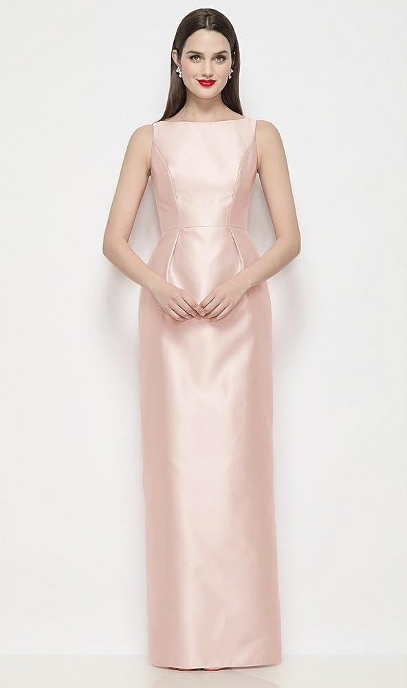Bateau Neck Satin Maxi Dress with Pleated Column Skirt in Blush