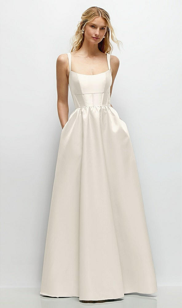 Scoop Neck Inset Corset Satin Maxi Dress with Pockets in Ivory
