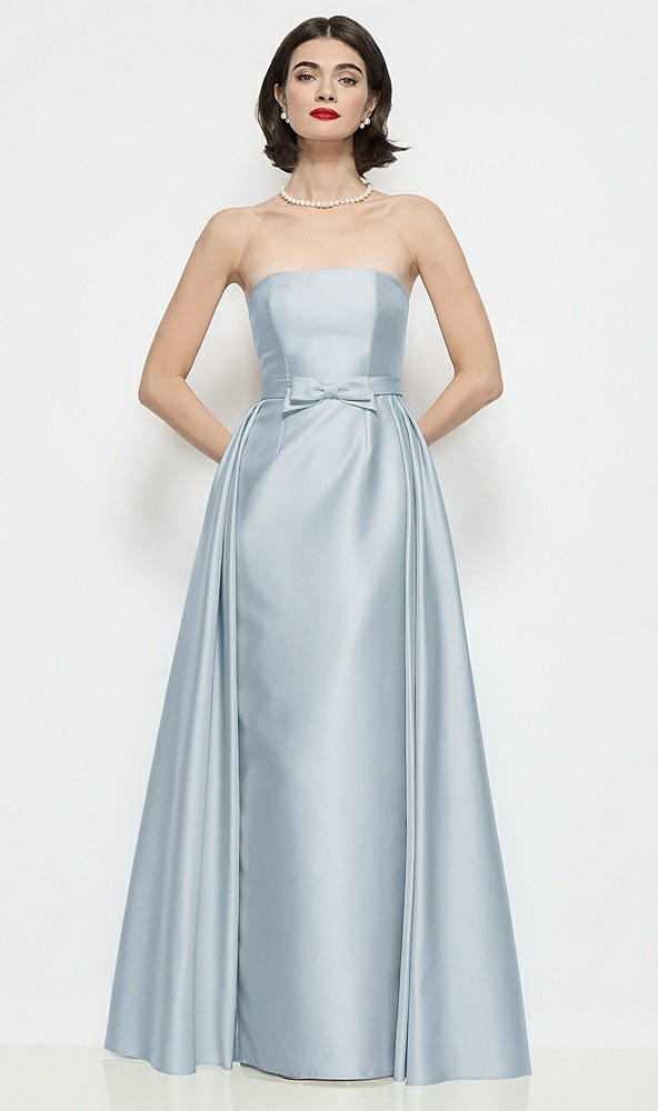Strapless Bow-Waist Satin Column Dress with Overskirt in Mist