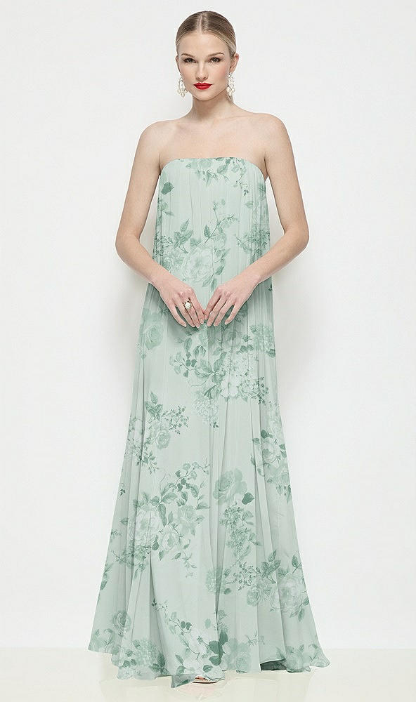 Strapless Shirred Floral Chiffon Trapeze Maxi Dress in Mint Green Floral
