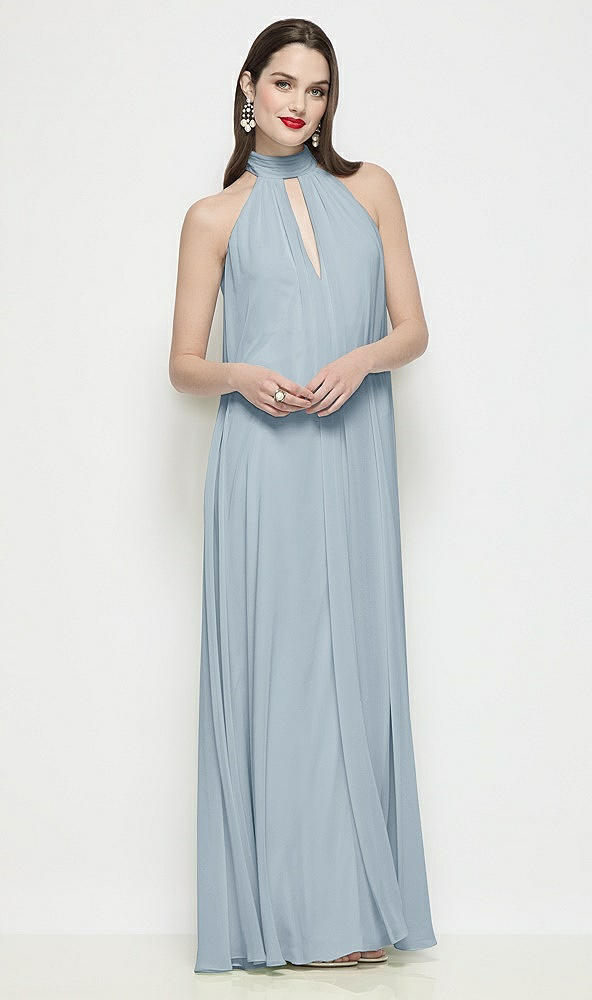 Slip-On Shirred Chiffon Trapeze Halter Dress in Mist