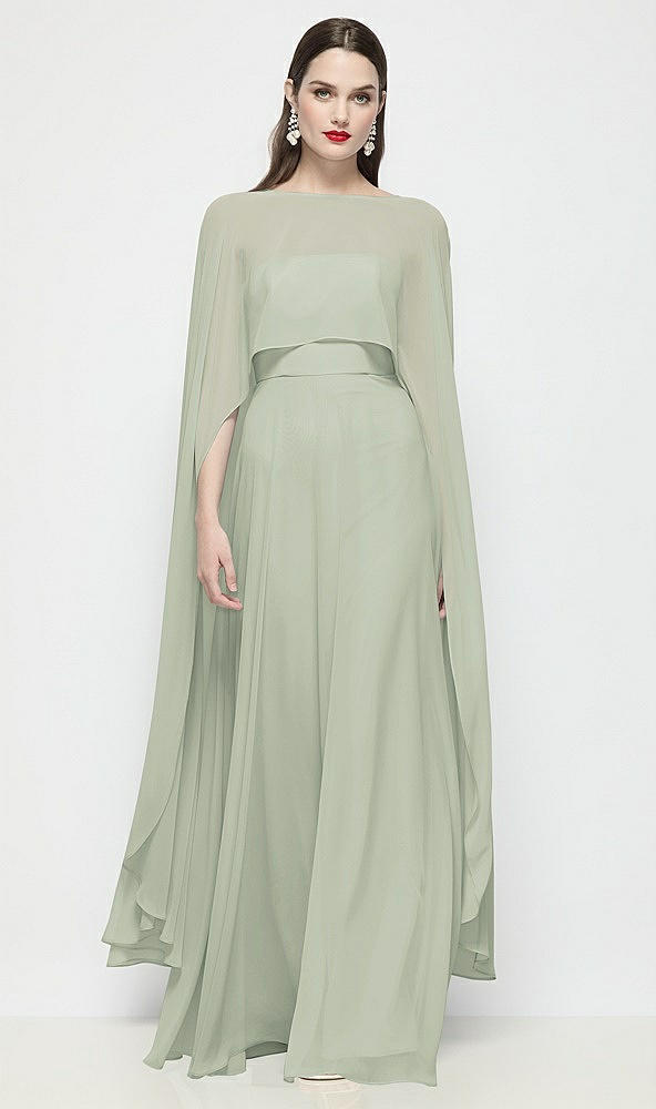 High-Low Sheer Chiffon Cape in Celadon