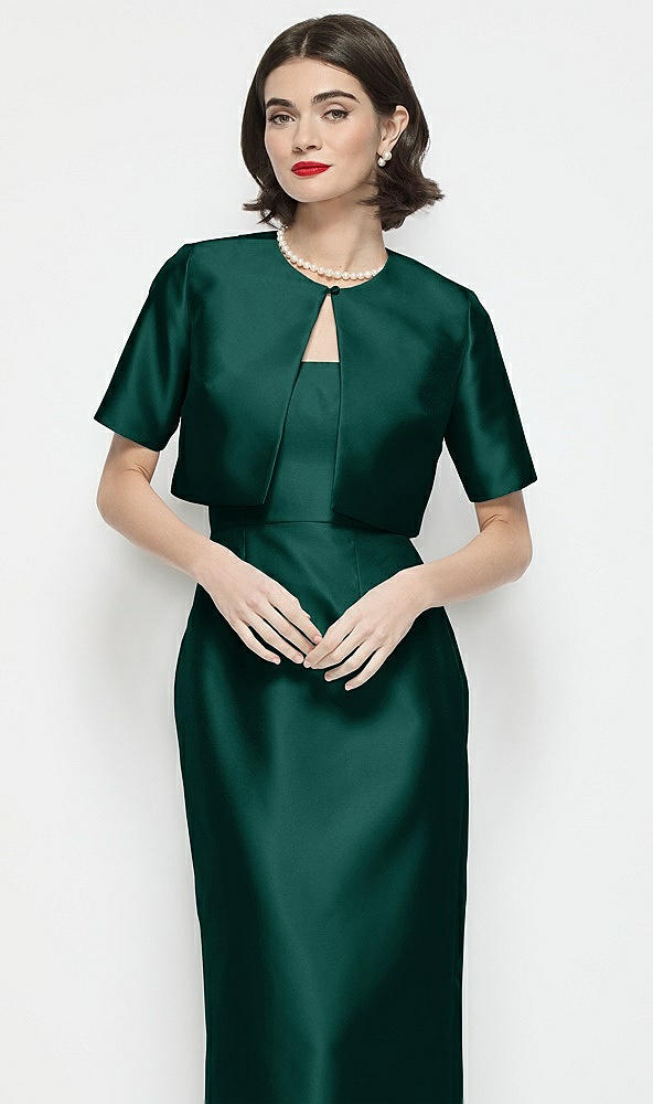 Jewel Neck Cropped Satin Jacket in Evergreen