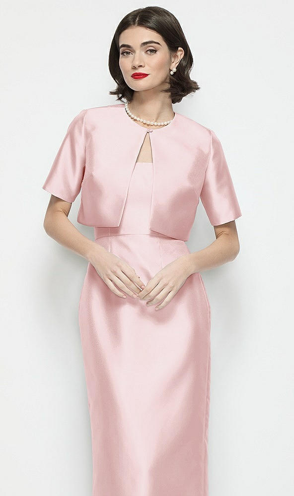 Jewel Neck Cropped Satin Jacket in Ballet Pink