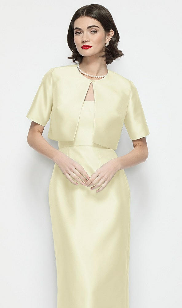 Jewel Neck Cropped Satin Jacket in Butter Yellow