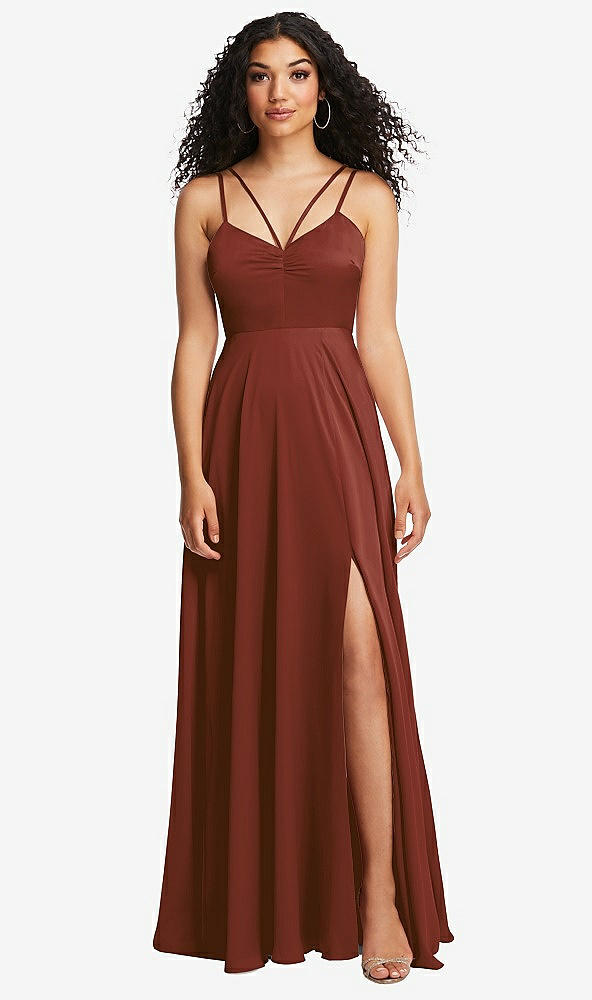 Dual Strap V-Neck Lace-Up Open-Back Maxi Dress in Auburn Moon