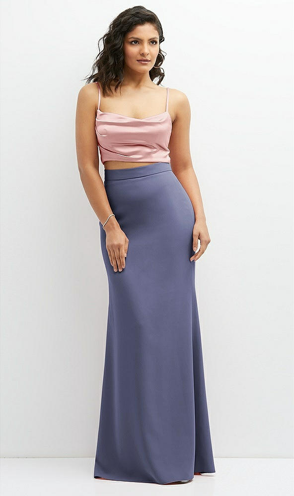 Side View - French Blue Crepe Mix-and-Match High Waist Fit and Flare Skirt