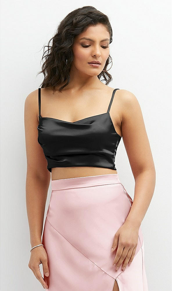 Alt View 1 - Black Satin Mix-and-Match Draped Midriff Top