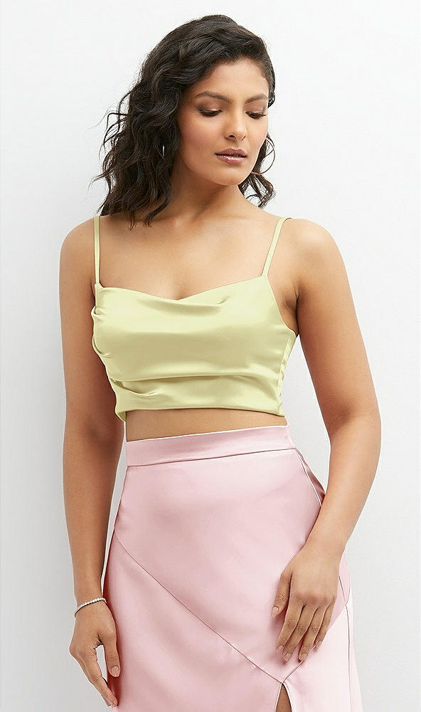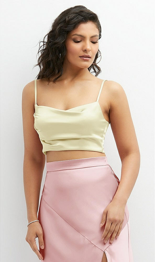 Front View Thumbnail - Butter Yellow Satin Mix-and-Match Draped Midriff Top