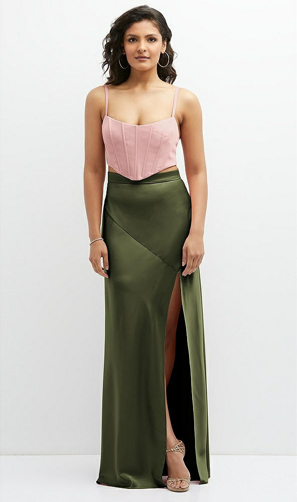 Front View - Olive Green Satin Mix-and-Match High Waist Seamed Bias Skirt
