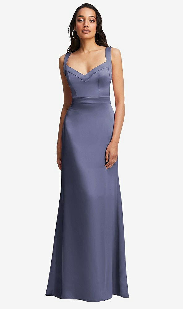 Framed Bodice Criss Criss Open Back A-Line Maxi Dress in French Blue